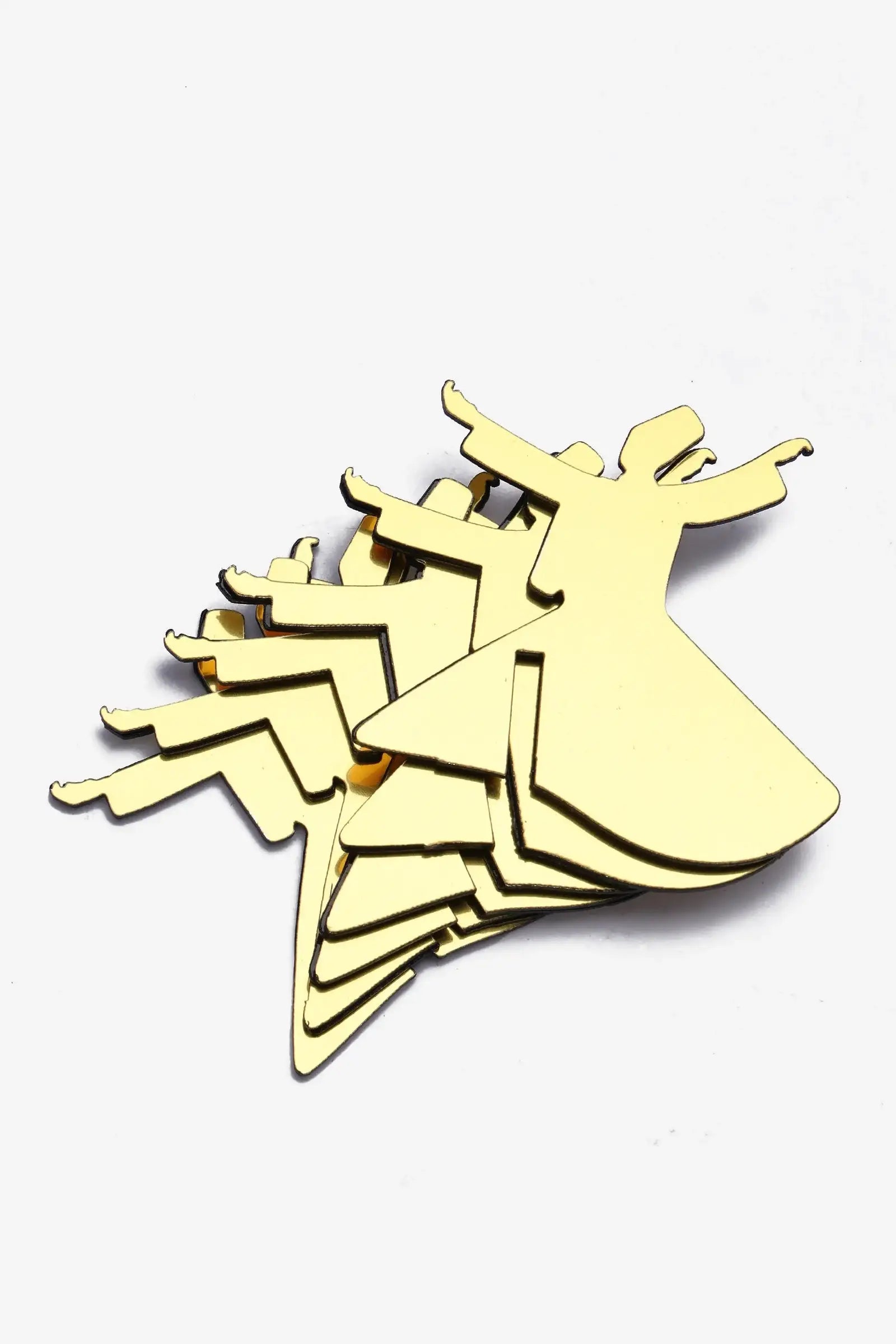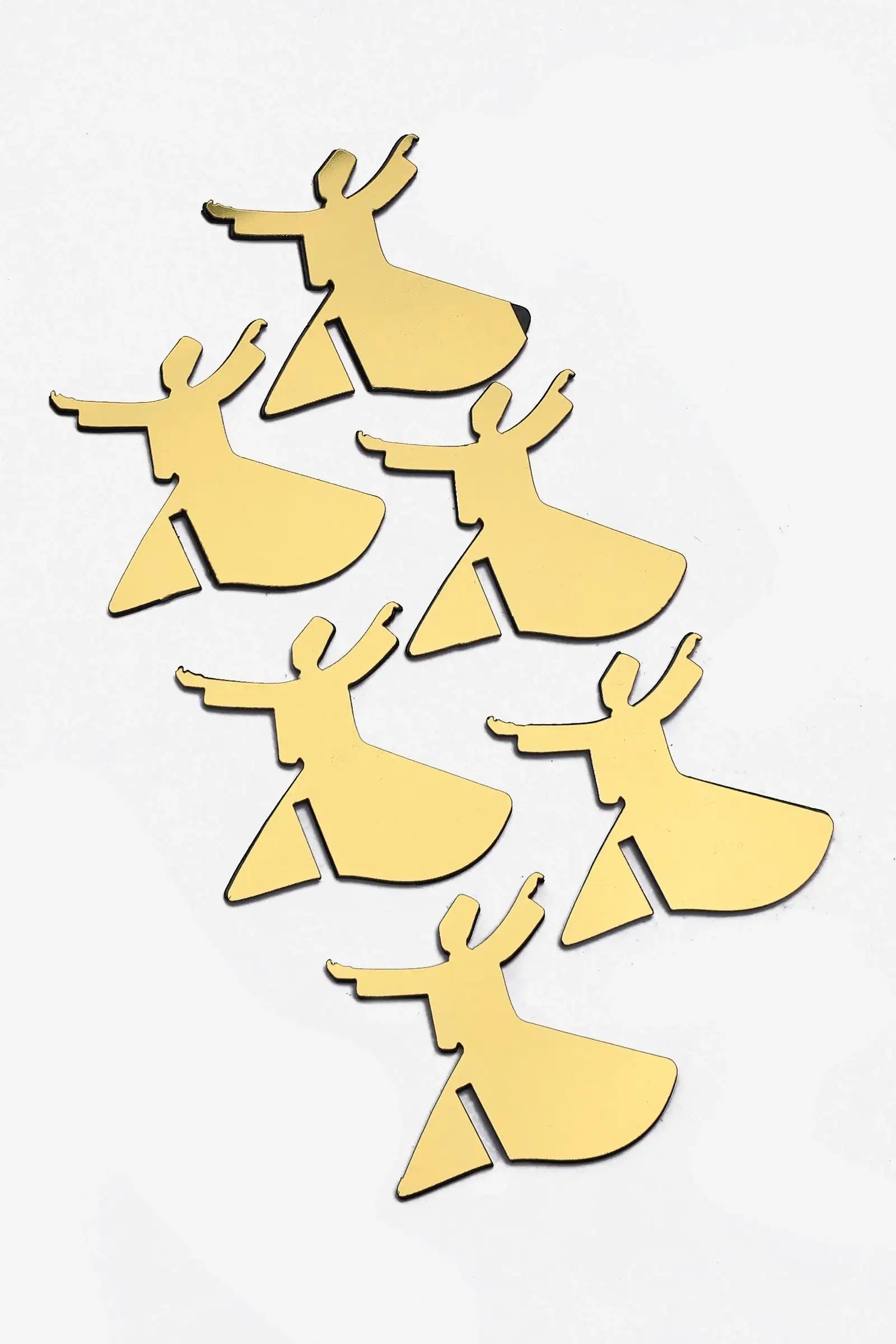 Celebrate spiritual elegance with this Dervish Set, featuring 6 intricately designed pieces inspired by the graceful whirling dervish silhouette. Crafted from a glossy gold-toned material, each piece captures the fluid motion and mystique of Sufi dancers, symbolizing unity, peace, and inner balance. These artistic figures are perfect as decorative accents for your home, event settings, or creative projects, adding a unique cultural and spiritual charm wherever they are displayed. Lightweight and easy to arrange, they make a meaningful addition to any décor collection.