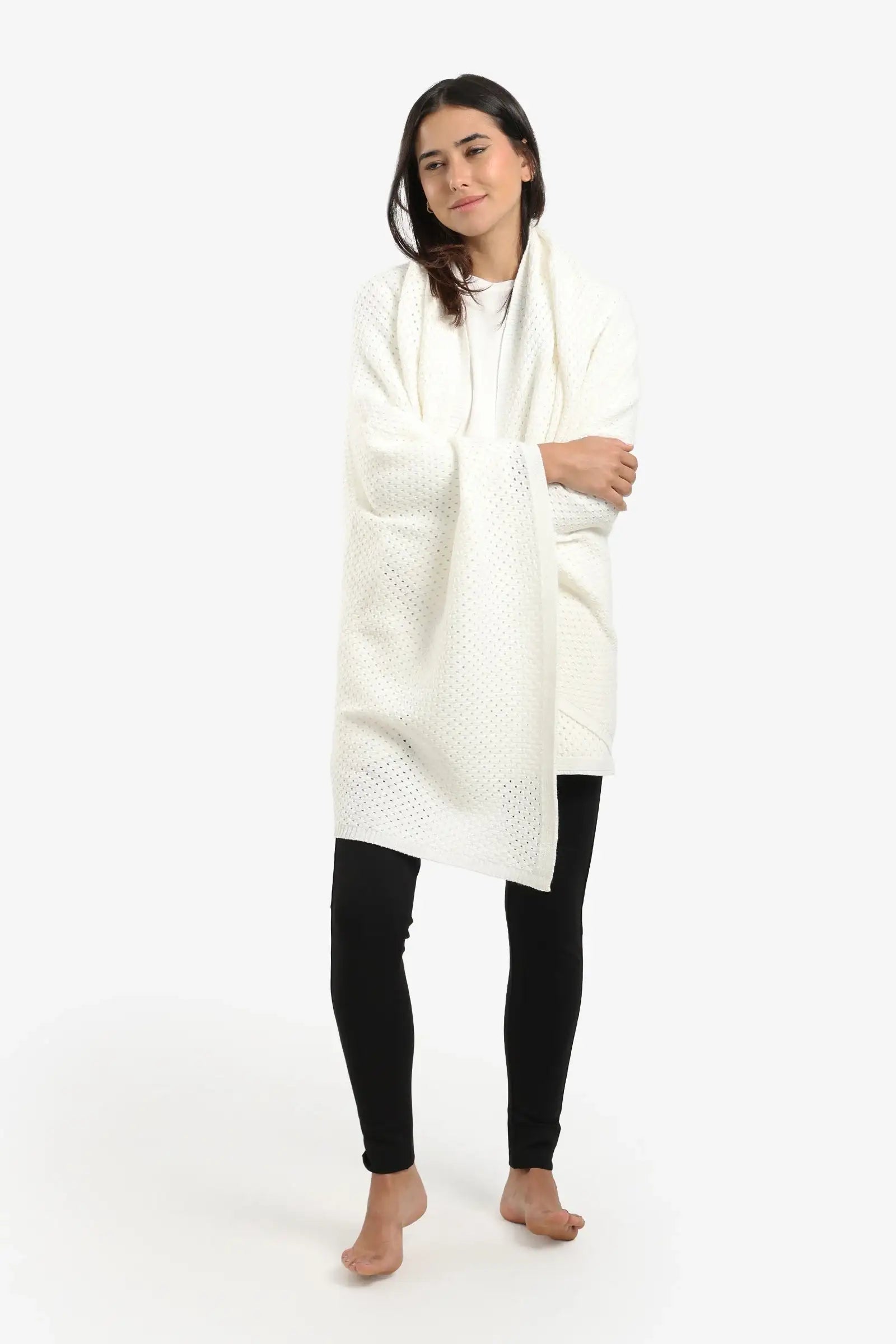 Wrap yourself in cozy comfort with this polyester tricot Everyday Comfort Tricot Throw. Featuring a delicate perforated pattern, it’s lightweight yet warm, making it perfect for lounging at home or adding a stylish touch to your bed or sofa. Its generous one-size fit ensures comfort for everyone.
