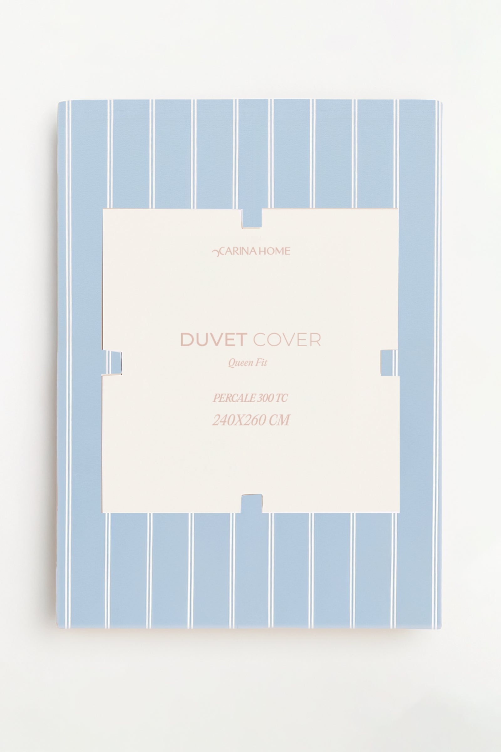 This luxurious percale duvet cover set is crafted from 100% cotton with a thread count (TC) of 300, ensuring a crisp, breathable, and smooth texture. The striped pattern brings a touch of elegance to the duvet cover, accentuated by a neatly stitched border that gives it a refined finish.
