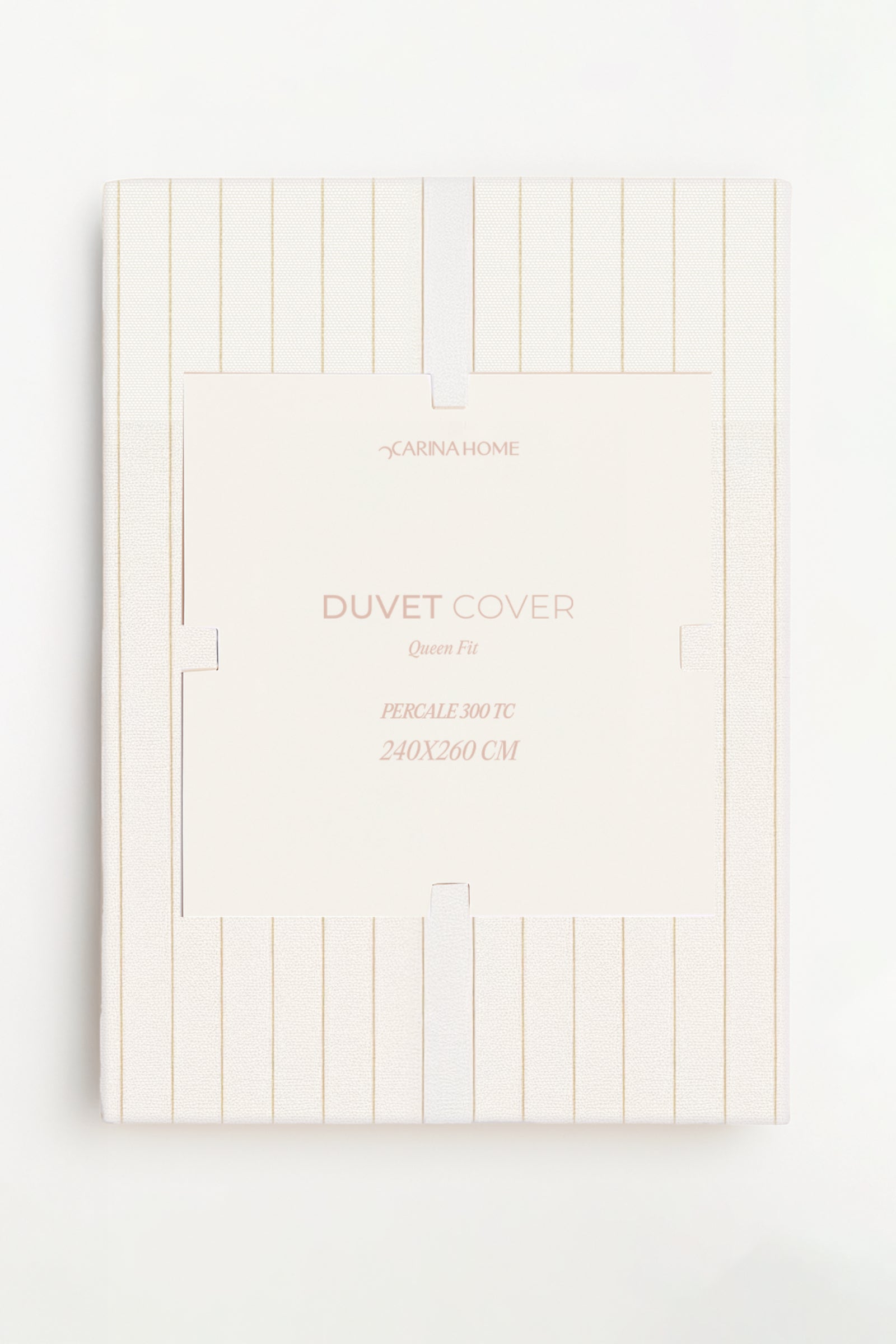 This luxurious percale duvet cover set is crafted from 100% cotton with a thread count (TC) of 300, ensuring a crisp, breathable, and smooth texture. The striped pattern brings a touch of elegance to the duvet cover, accentuated by a neatly stitched border that gives it a refined finish.