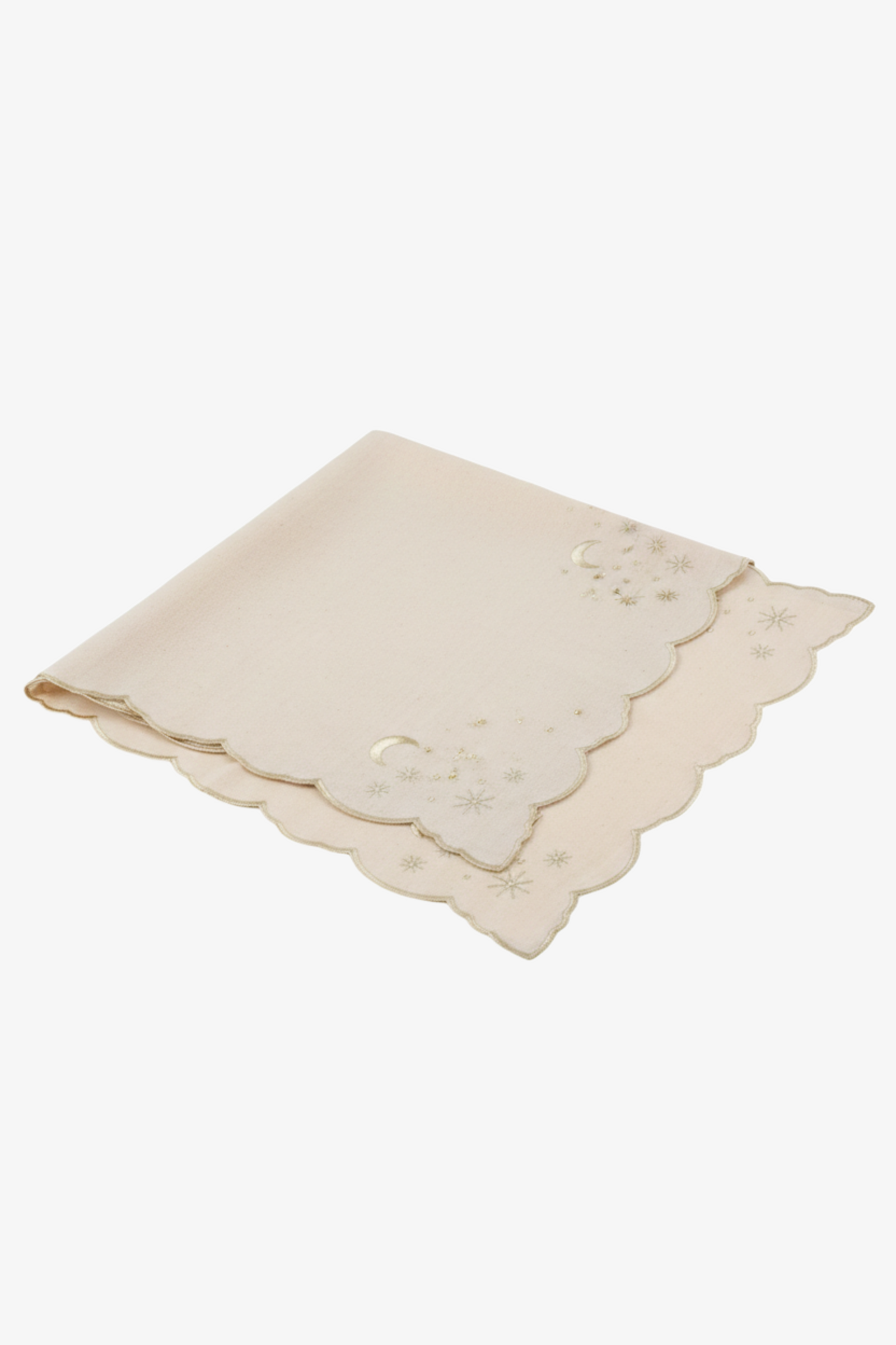 - Pattern: Moon & Star embroidery with scalloped edges