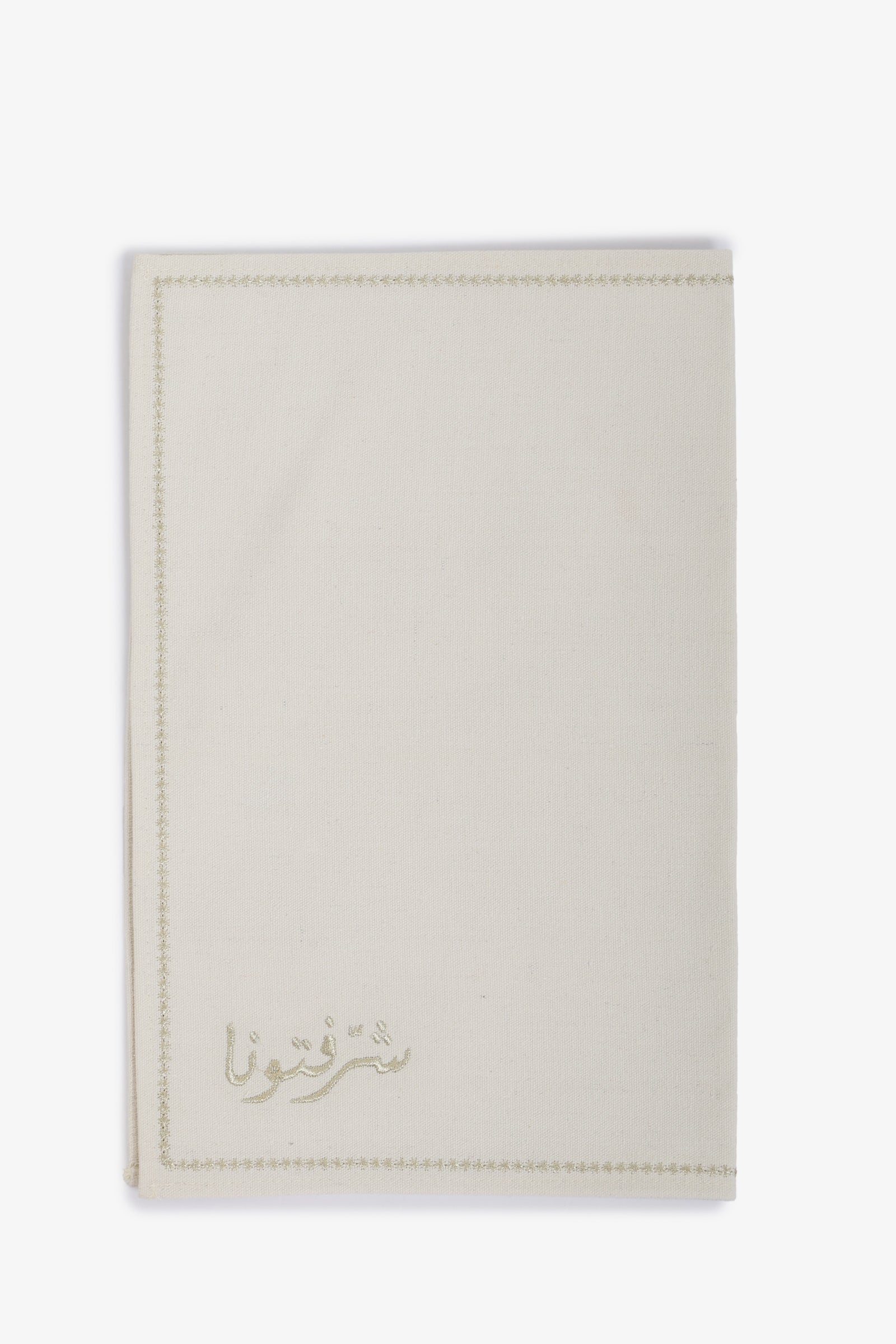 Add a festive and cultural touch to your Ramadan table with this elegant placemat. Crafted from high-quality cotton duck, it features intricate Arabic “Sharaftouna” embroidery with a tailored hemmed edge, bringing a refined and celebratory charm to your iftar and suhoor settings. Durable and stylish, it’s perfect for adding a special touch to every Ramadan meal.