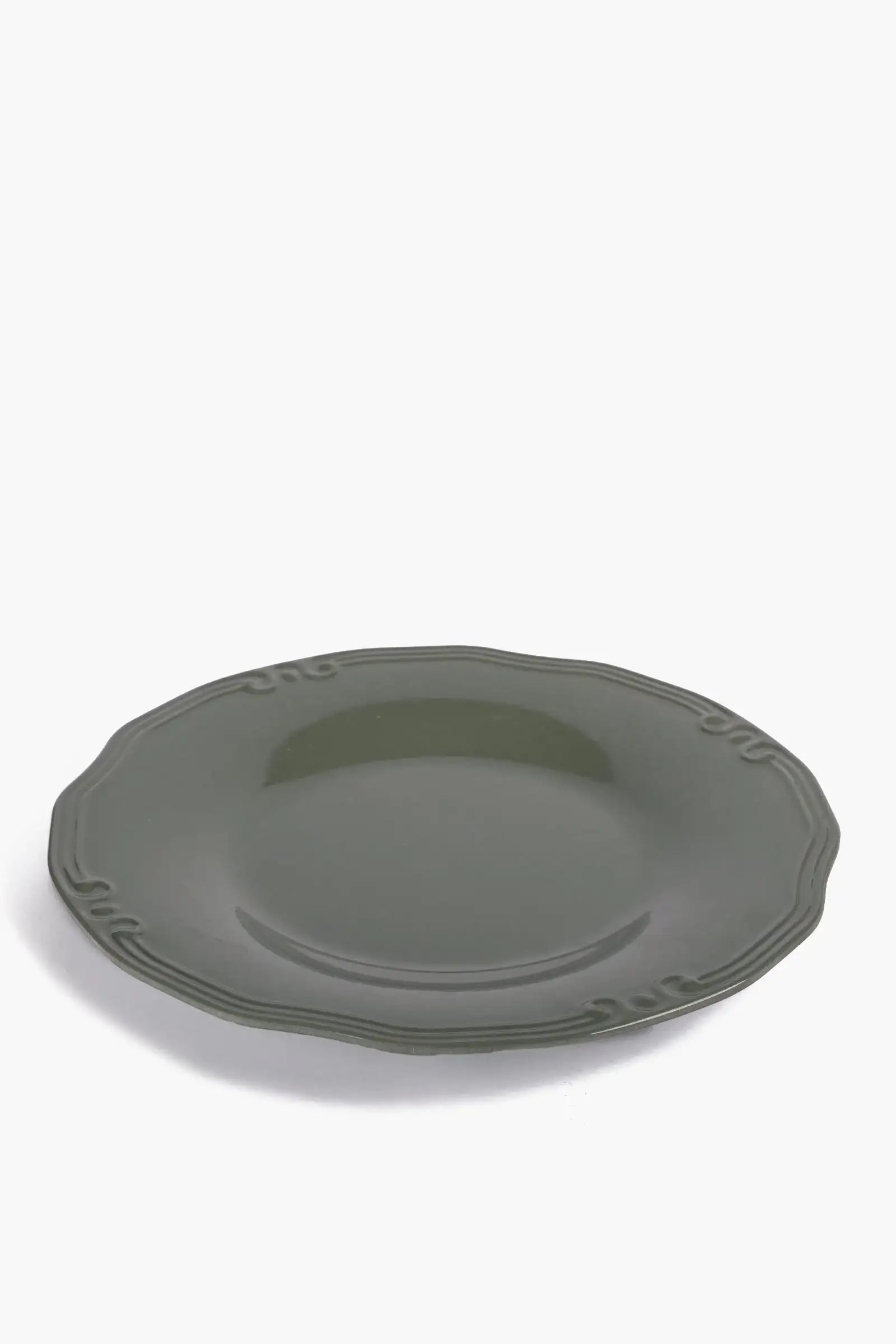 Ideal for both indoor and outdoor dining, its break-resistant material makes it practical for everyday meals, picnics, and gatherings. The decorative edge detail adds a sophisticated touch to any table setting.