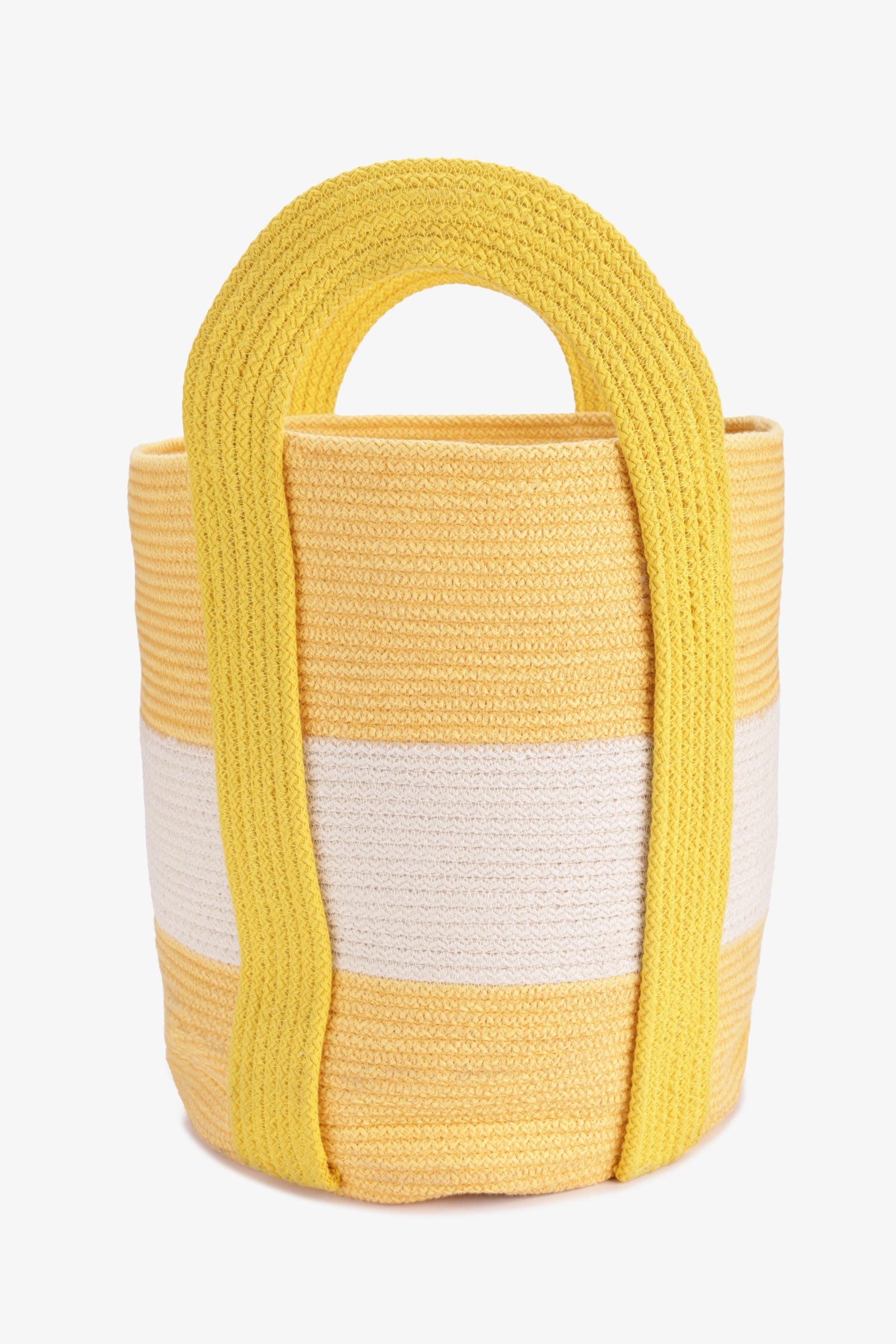 Bring both functionality and charm into your home with this striped cotton rope basket. Designed in soothing blue and white tones, it adds a fresh coastal feel to any space. Its durable woven texture and roomy design make it ideal for storing blankets, toys, laundry, or daily essentials, while the strong handles ensure effortless portability. A perfect balance of practicality and style.