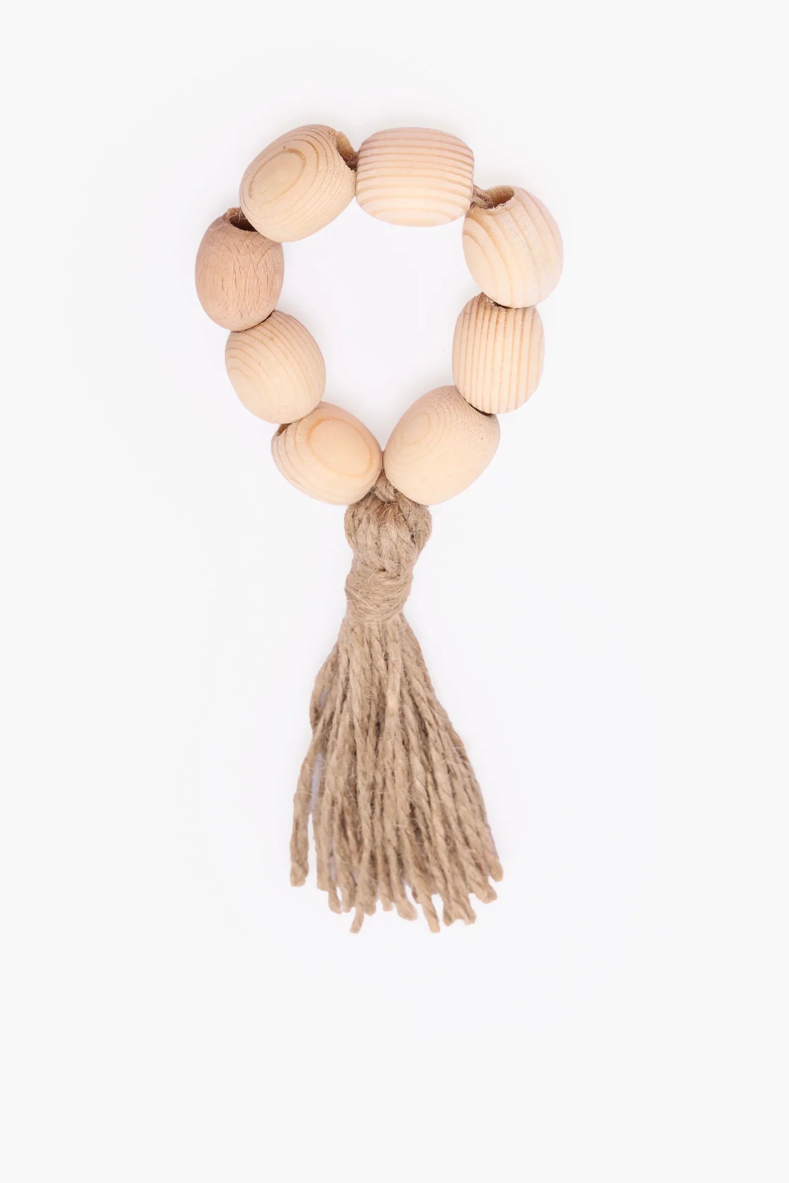 This rustic wooden napkin holder features smooth, natural wood beads strung together with sturdy jute twine, finished with a charming tassel. Perfect for adding a warm, organic touch to your dining table, it blends effortlessly with boho, farmhouse, or coastal décor styles.